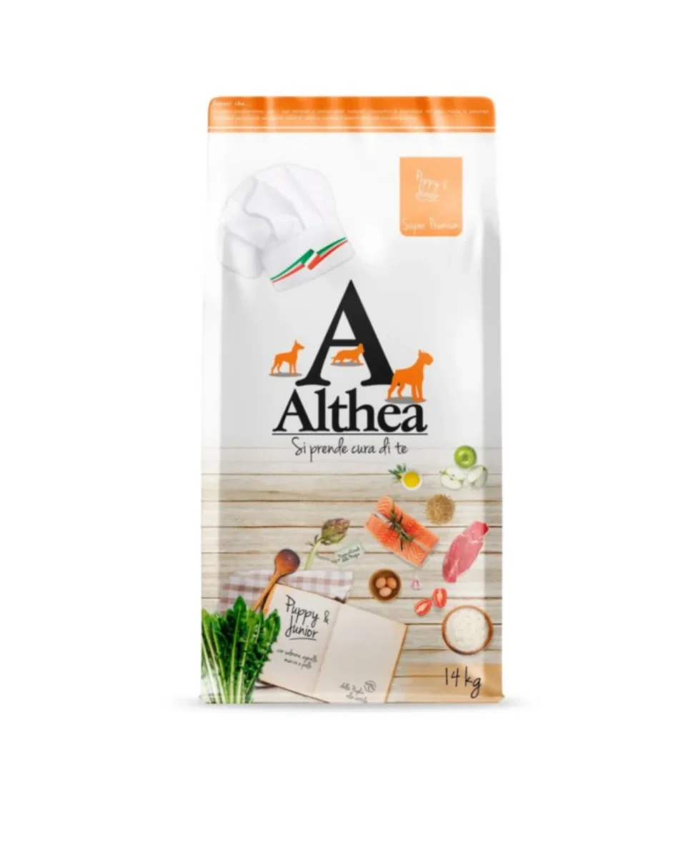 Althea – Puppy & Junior Medium/Maxi con Salmone, Agnello, Manzo e Pollo14kg