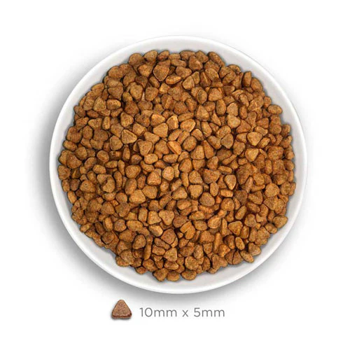 Non vengono utilizzate farine di carne o di pesce e niente di trattato, disidratato o artificiale. Le crocchette vengono cotte a basse temperature per conservare le sostanze nutritive naturali e vengono aggiunti prebiotici, olio di pesce e semi di lino per favorire la digestione e accrescere il valore nutrizionale.