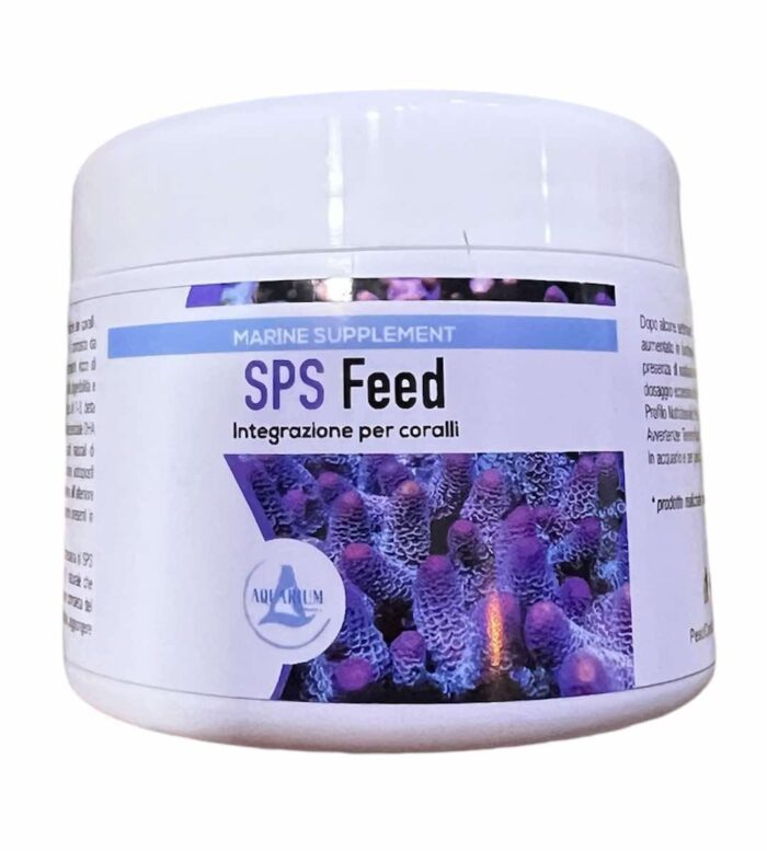 AquariumAngri Sps FEED è una miscela di fitoplancton e zooplancton formulata per soddisfare le esigenze nutrizionali specifiche dei coralli, in particolare i coralli SPS (short polyp stony) e i coralli non fotosintetici come le gorgonie. Integra AquariumAngri Sps FEED è composto da palaemontes varians (fonte di proteine ad elevato valore nutritivo a base di amminoacidi essenziali completi, ricco di glutammina). Tetraselmis chui (fonte di antiossidanti naturali, vitamina c, e, b12, superossido dismutasi, alta digeribilità , ricco di acidi grassi essenziali Epa e Ara), Phaeodactylum tricornutum ( stimola il sistema immunitario ricco di 1-3, betaglucani, alto contenuto di acido grasso essenziale Epa), Isochrysis galbana (t-iso) (molto ricco di acido grasso essenziale dha e micronutrienti coinvolti nei processi metabolici complessi), olio di sardina, tocoferoli (a base di estratti naturali di rosmarinus officinalis, un antiossidante che sbabilizza gli acidi grassi essenziali).