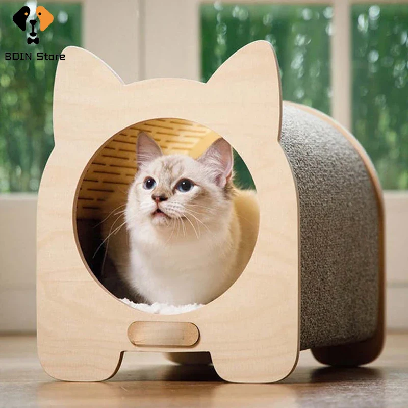 Casetta per gatti in legno 3 in 1 con tiragraffi