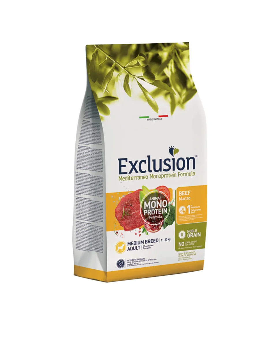 Exclusion – Mediterraneo Monoproteico Noble Grain Adult Medium Breed – Manzo 12kg
