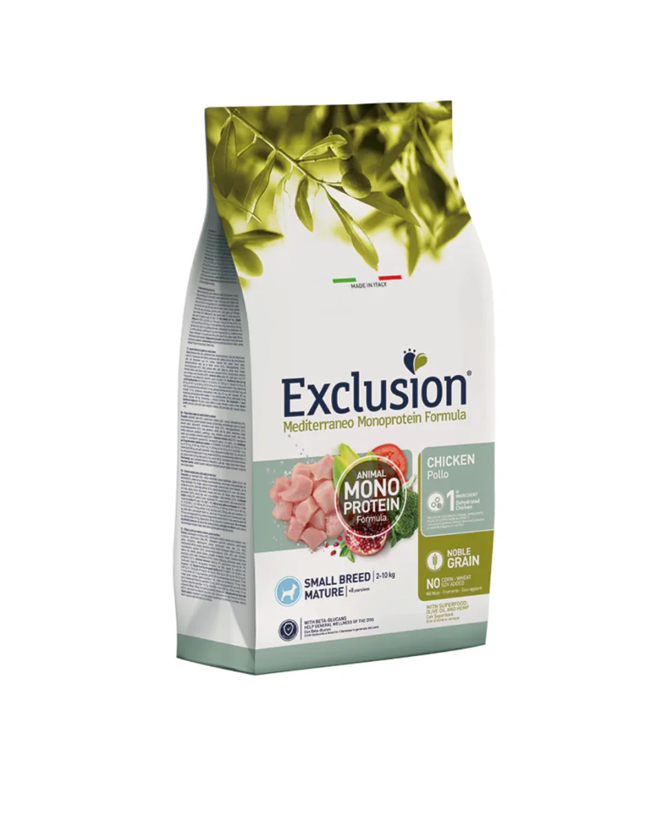 Exclusion – Mediterraneo Monoproteico Noble Grain – Small Breed Mature – Pollo 500gr