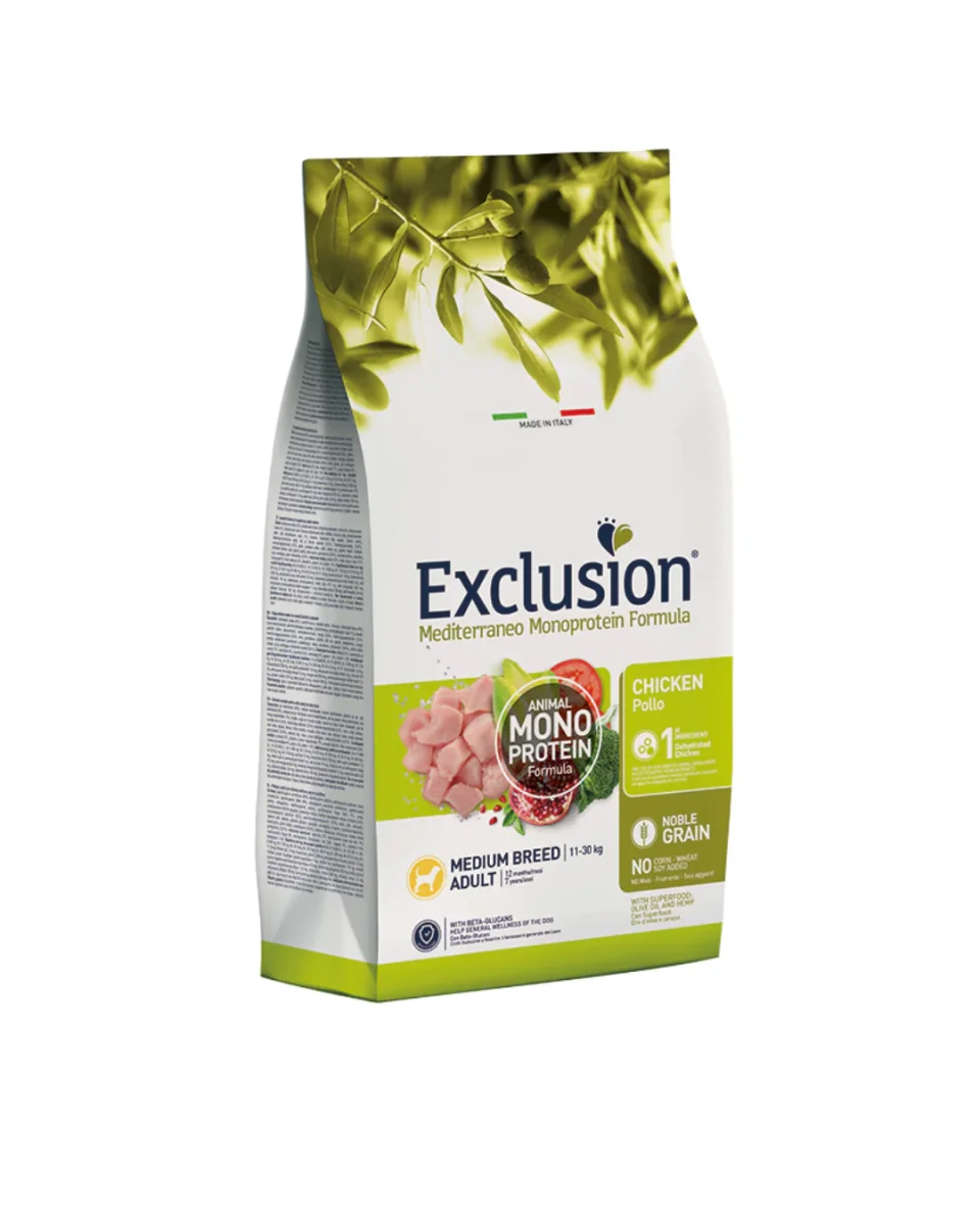 Exclusion – Monoproteico Noble Grain Adult Medium – Pollo 12kg