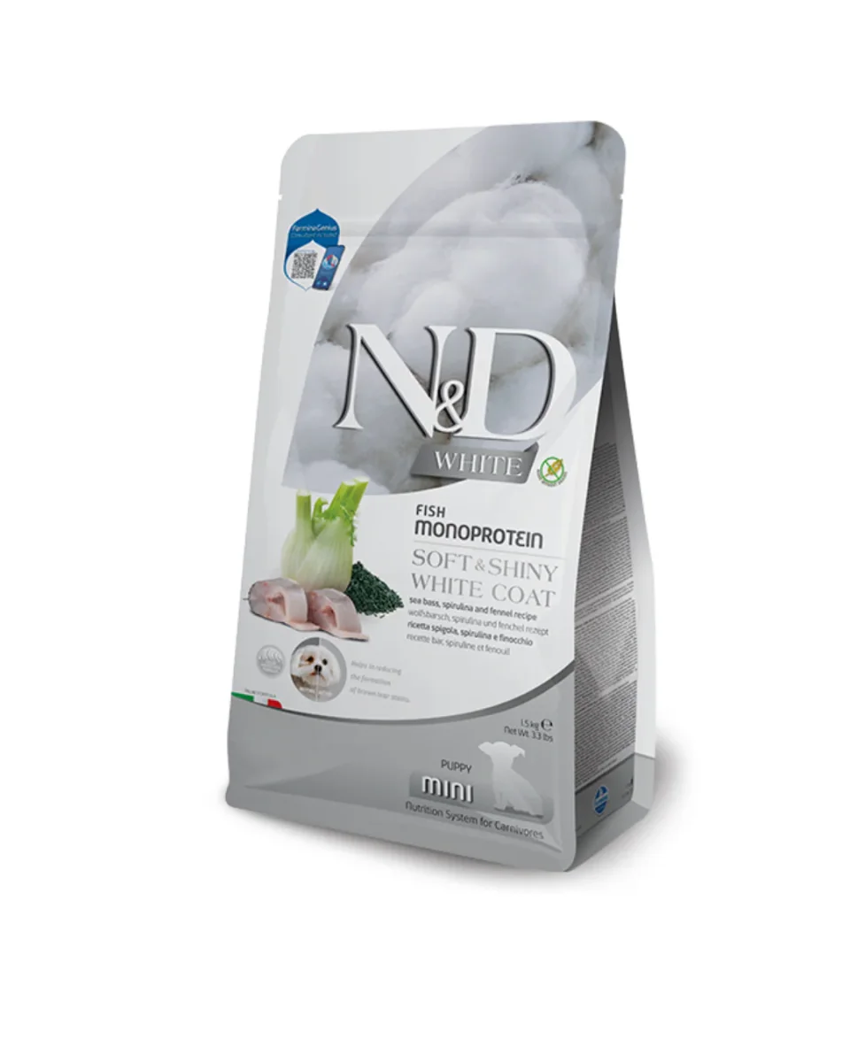 Farmina – N&D – White – Dog Puppy Mini – Spigola, Spirulina e Finocchio 1,5kg