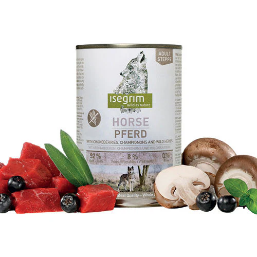 Isegrim Wild Cavallo Bacche di Aronia e Funghi รจ un cibo umido completamente naturale per cani adulti, realizzato in Germania con materie prime attentamente selezionate provenienti da agricoltura locale e regionale.