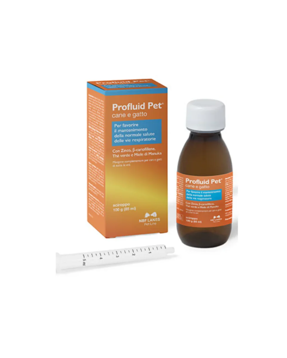 Profluid Pet Mangime Complementare per Cani e Gatti è un mangime complementare in formato sciroppo fluido, altamente appetibile, pensato per sostenere il benessere delle vie respiratorie.