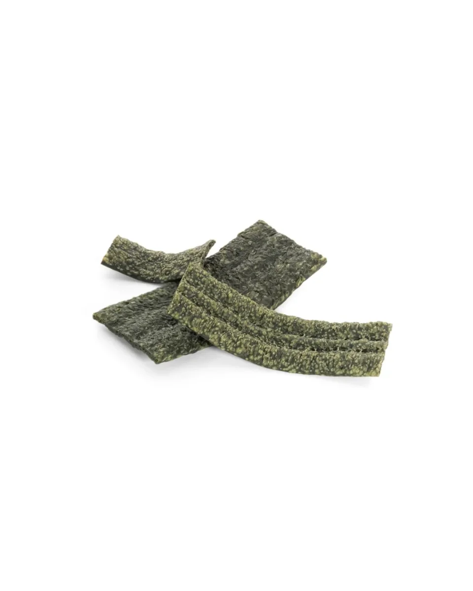 Alga Gum snack masticativo innovativo per cani a base di alghe marine, Laminaria e Spirulina, pensato per supportare il benessere digestivo e contribuire all’igiene orale quotidiana.