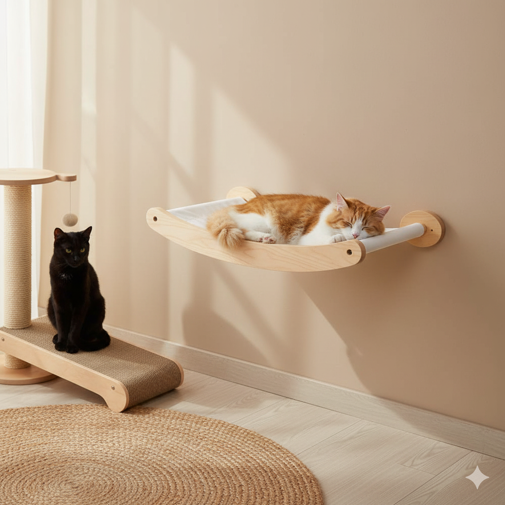 Kit per tiragraffi da parete in legno – trespolo, amaca e scale